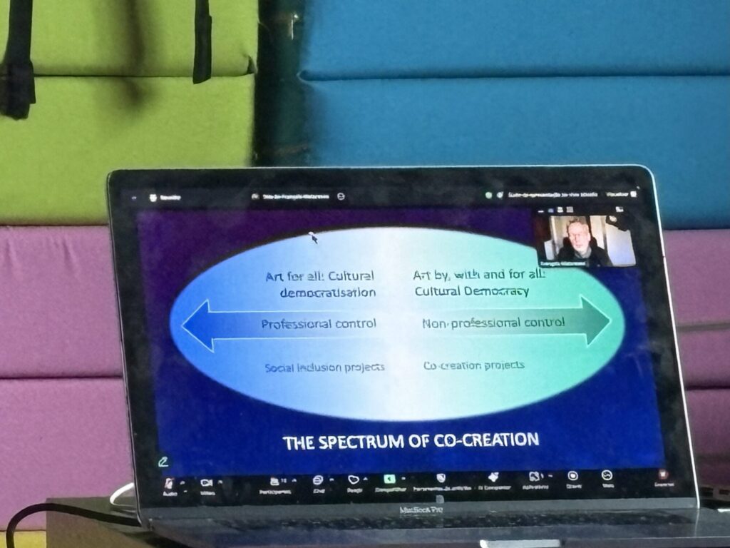 François Matarasso presented a reflection on the concept of co-creation in the context of artistic and cultural practice.